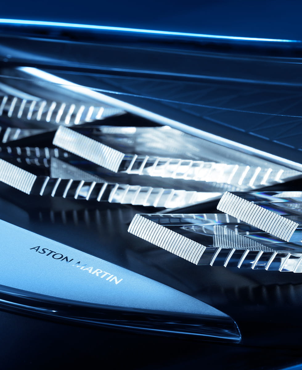 - 6-Vane metal grill with hand crafted, chrome plated brass and enamel Aston Martin badges front and rear
