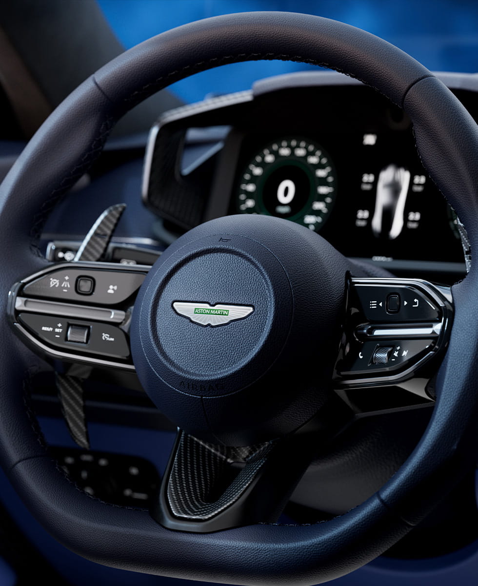 Inside the DB12 S, precision and performance continue seamlessly. Next-generation technical materials meet artisan-crafted detail to create a unique cockpit built for the absolute focus and control that DB12 S demands. From Alcantara®-trimmed surfaces and Sports Plus seats, to the driver-centric layout and bespoke infotainment system. Featuring the innovative integration of Apple CarPlay Ultra®, debuted by Aston Martin. Every element mirrors the driver intent. To lead. Never to follow.