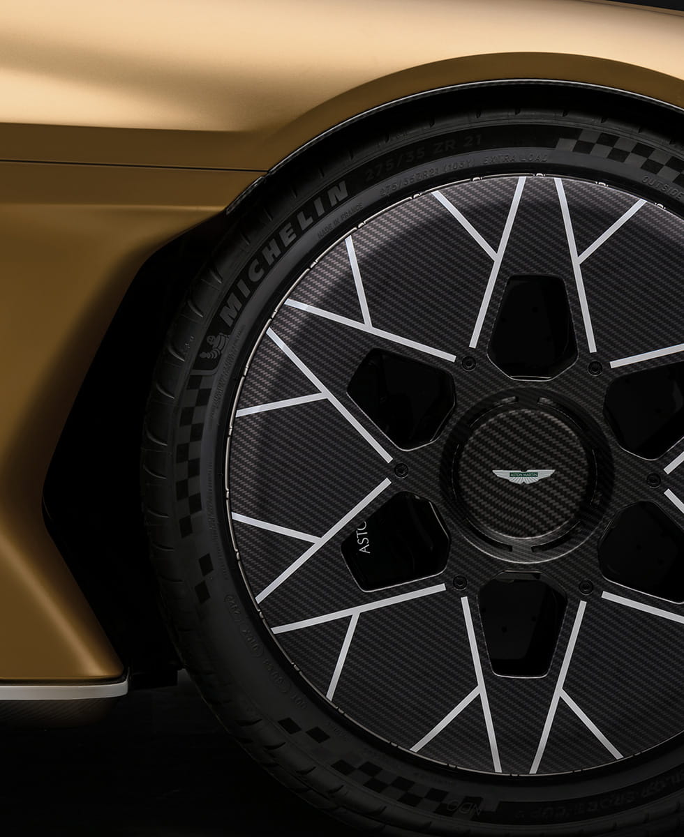 The most extreme front-engine road car ever built by Aston Martin. Road legal, but everything it knows is learnt from the track. A 5.2-litre, twin-turbocharged V12. With a manual transmission. Exposed gear linkages. Magnesium wheels. Carbon-fibre aero covers. Quad titanium exhaust. Half cage. Race-bred dampers. And motorsport-grade lightweighting.
