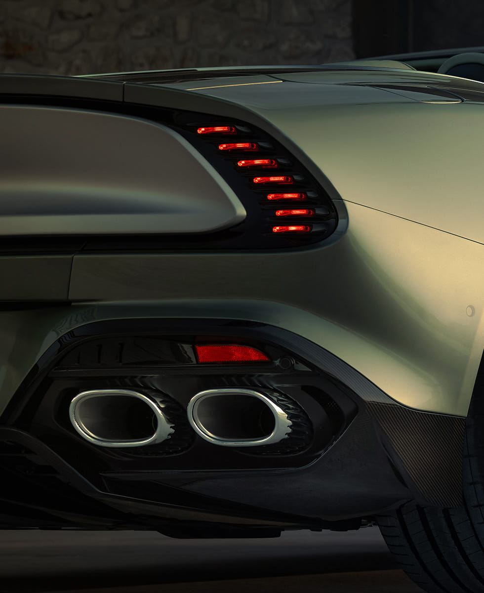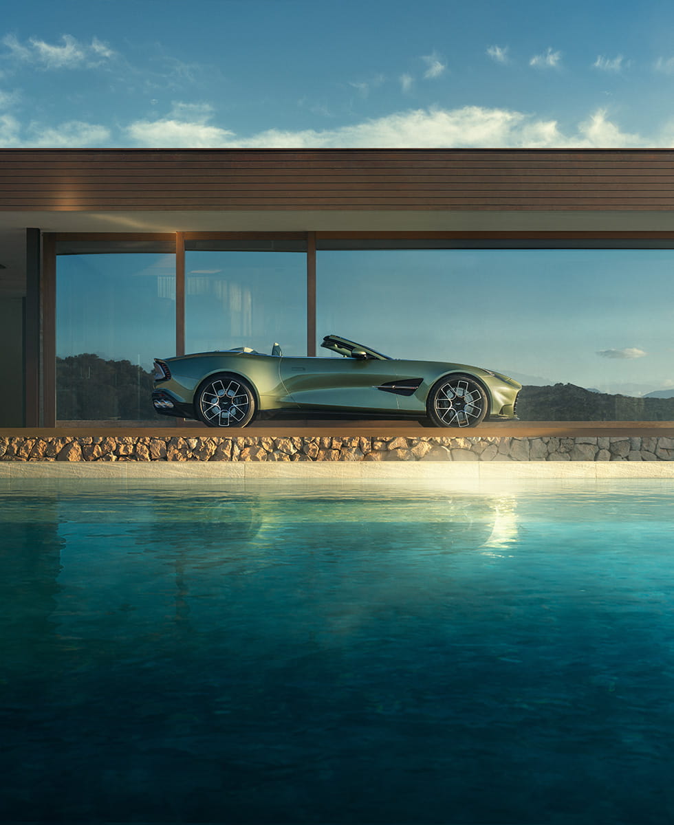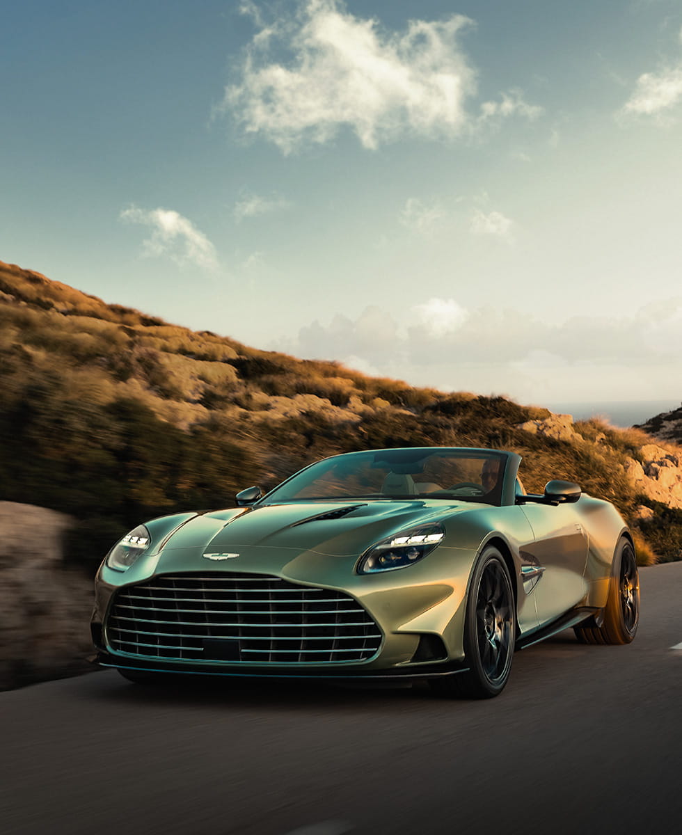 Authority. Poise. Head-turning presence. The sleek, Vanquish Volante exudes confidence and elegant proportions, seamlessly blending roof-down sophistication with epic power. Its iconic, eye-catching, uniquely crafted design perfectly capturing the quintessence of top-down driving.