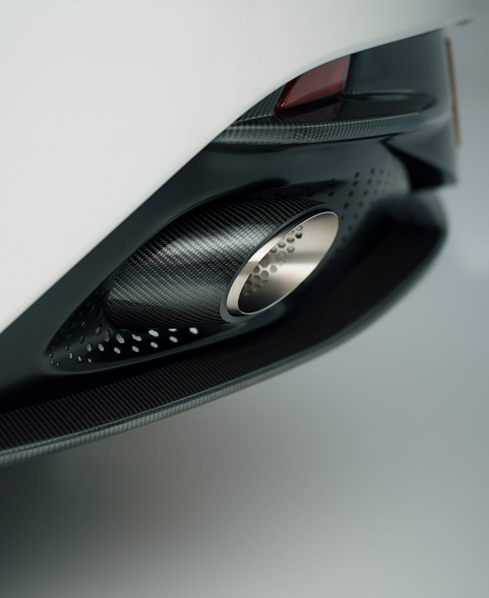 Tailpipe finishers offer Aston Martin’s usual stunning blend of form and function. The exterior design piece features a 2x2 twill polished carbon fibre outer sleeve. The stainless-steel interior has a striking pattern of laser-cut hexagonal perforations. An innovative design that channels air flow between the carbon and stainless steel to ensure temperatures always remain controlled. These head-turning accessories are available as a dual or quad unit.