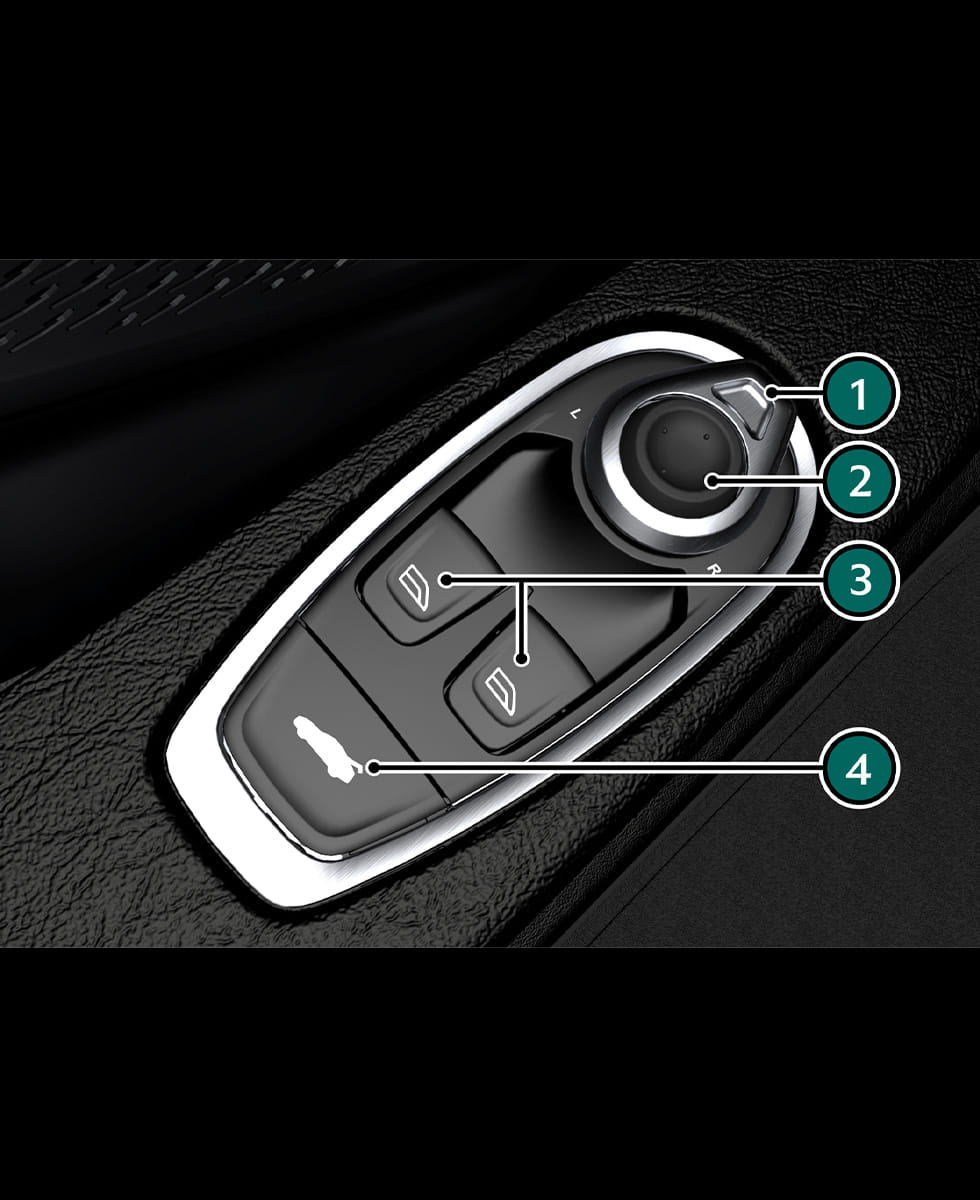 Press and hold to unlock or to lock all vehicle doors and open all windows.