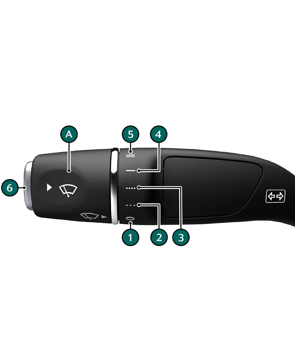 [6] : First detent for single wipe. Second detent for front windscreen washers.