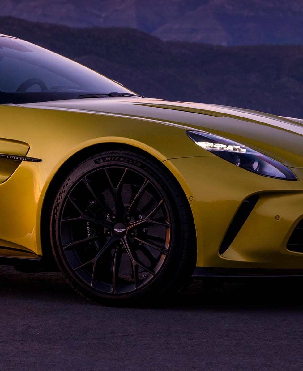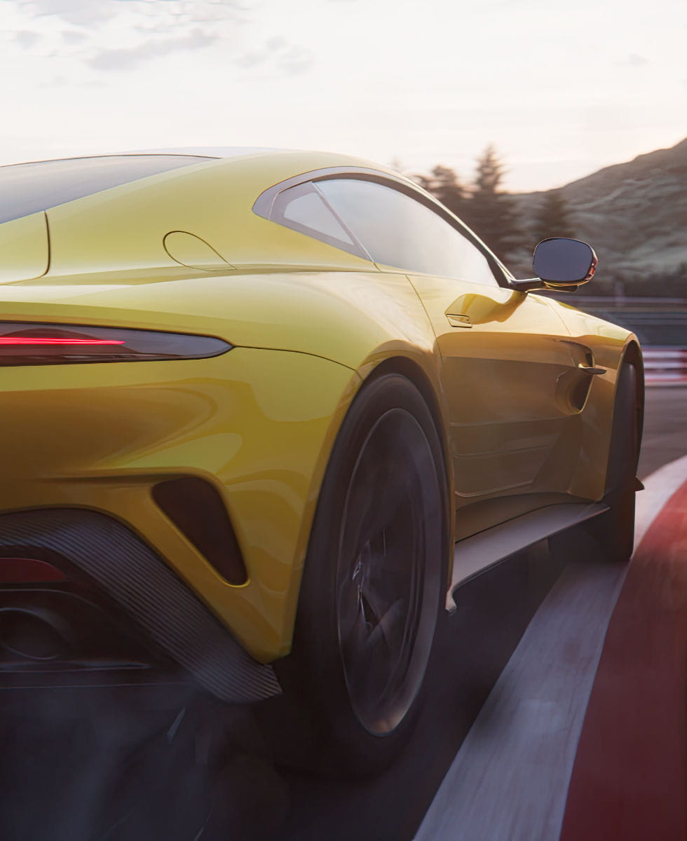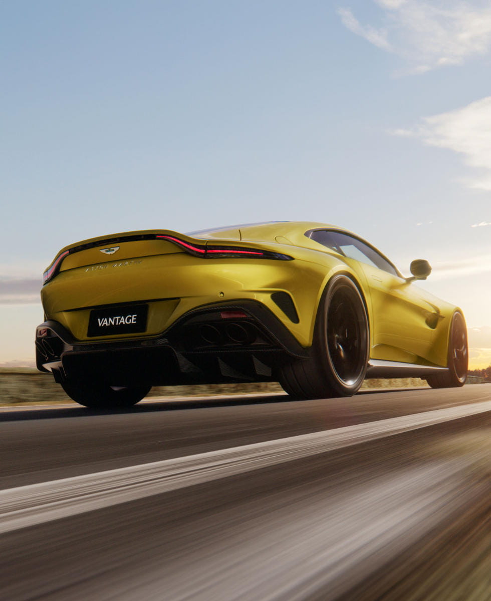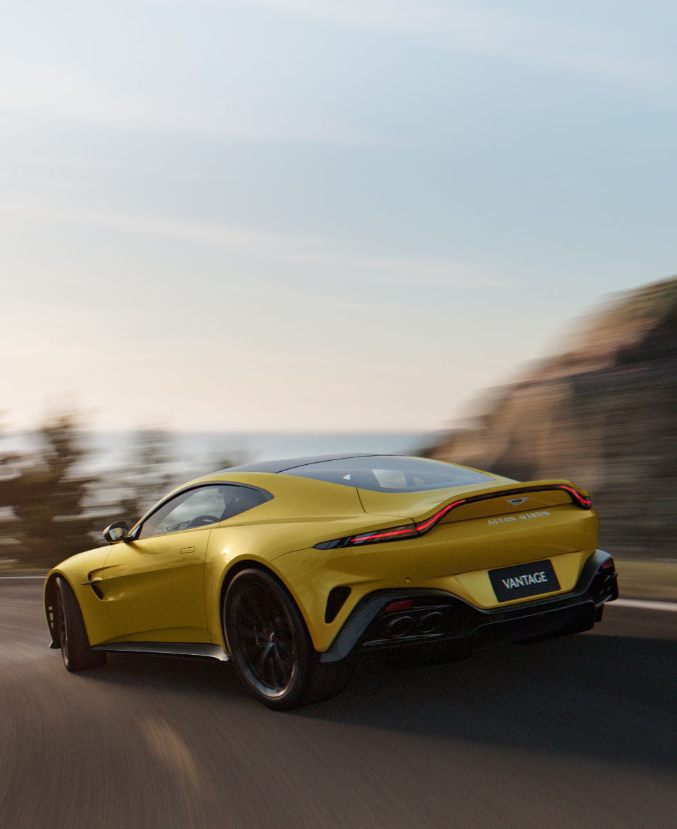 The potent new Vantage. The definitive front-engine rear-wheel sports car. Exuding dynamic ability. A handcrafted all-aluminum 4.0-liter twin-turbo V8 engine producing class-leading outputs of 670 HP and 590 lb-ft. More than simply a shrine to lap times, Vantage stands as a symbol to thrill seekers everywhere.