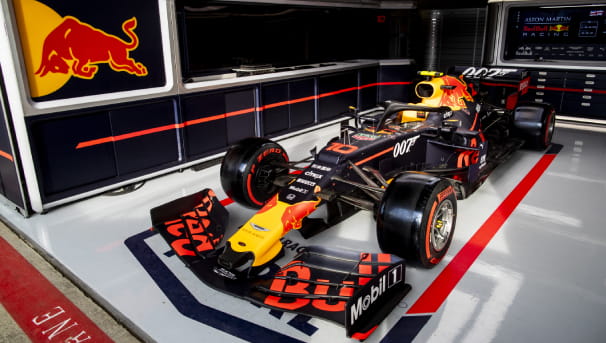 The Aston Martin Red Bull Racing pit garage will feature wall graphics inspired by Q’s MI6 Lab.