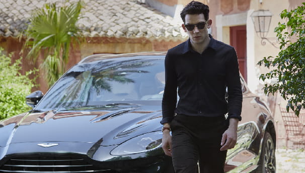O’Connor is filmed behind the wheel of a Minotaur Green Aston Martin DBX with a light ivory interior, a contemporary update of a classic colour combination. The camera follows his journey through the island’s vineyards and dirt roads, culminating in a visit to a mysterious but elegant villa. The Aston Martin team joined the production team on set in Sicily to help craft the subtly framed hero shots of the car.