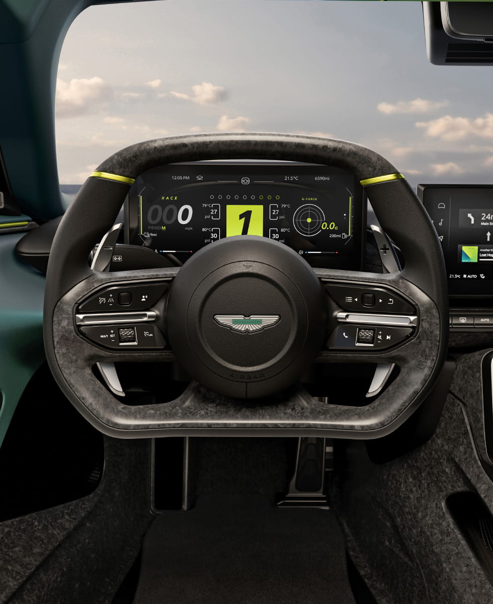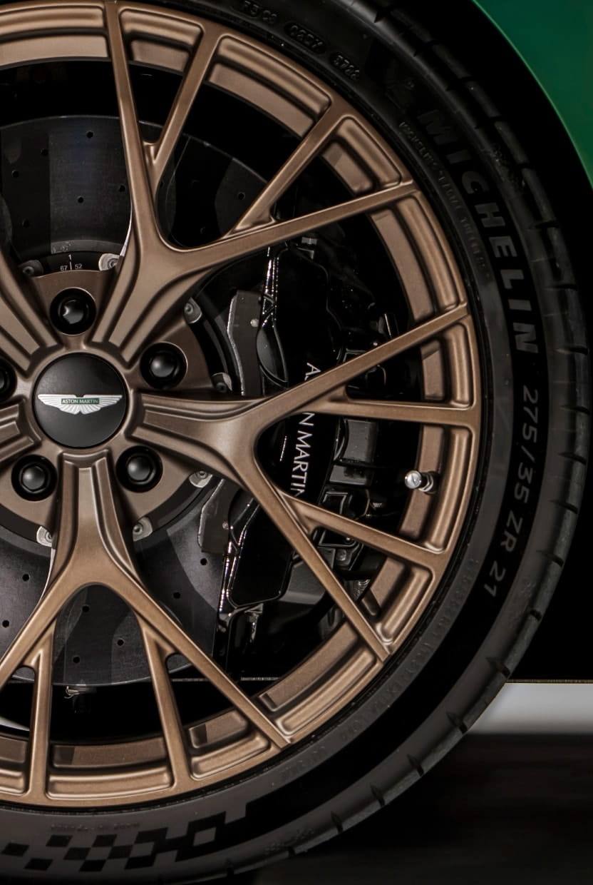 Harking back and howling forward. The most extreme front-engine road car ever built by Aston Martin. Road legal, but everything it knows is learnt from the track. A 5.2-litre, twin-turbocharged V12.