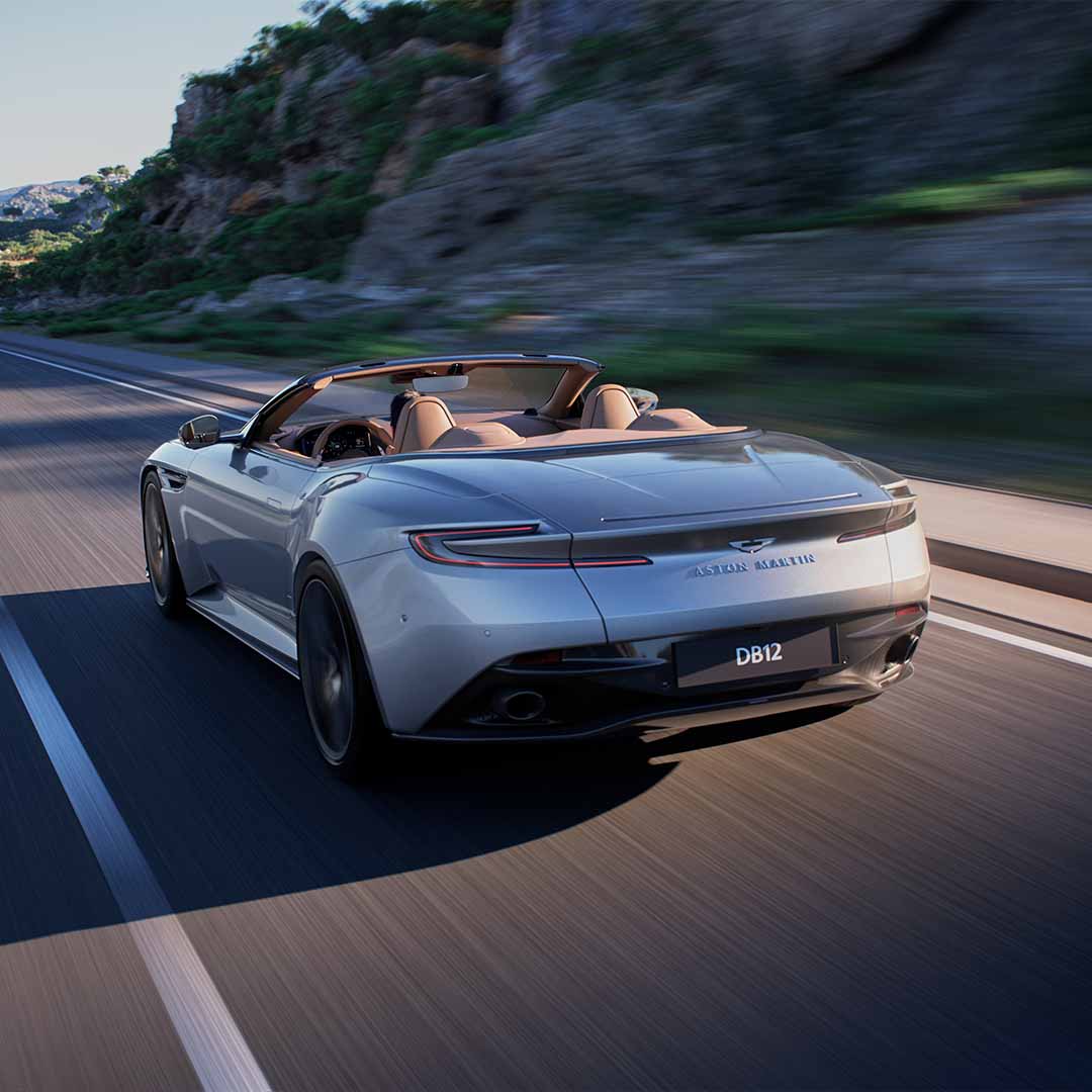 Formed around a ferocious centre of a twin-turbo V8. DB12 Volante floods your surroundings with 4.0 litres of roaring power. Burning to a class-defying 680PS for a top speed of 202mph. Taking its super capabilities to any road, highway or carriageway with 800Nm of pinpointed potency. Keeping its cool with Zirconium alloy heads for perfected temperature resistance. Carefully and obsessively hand-built from aluminium and fit with lightweight forged pistons to take hold and dispatch of every nanosecond of real-world performance. Its only upper limit is 7,200rpm.