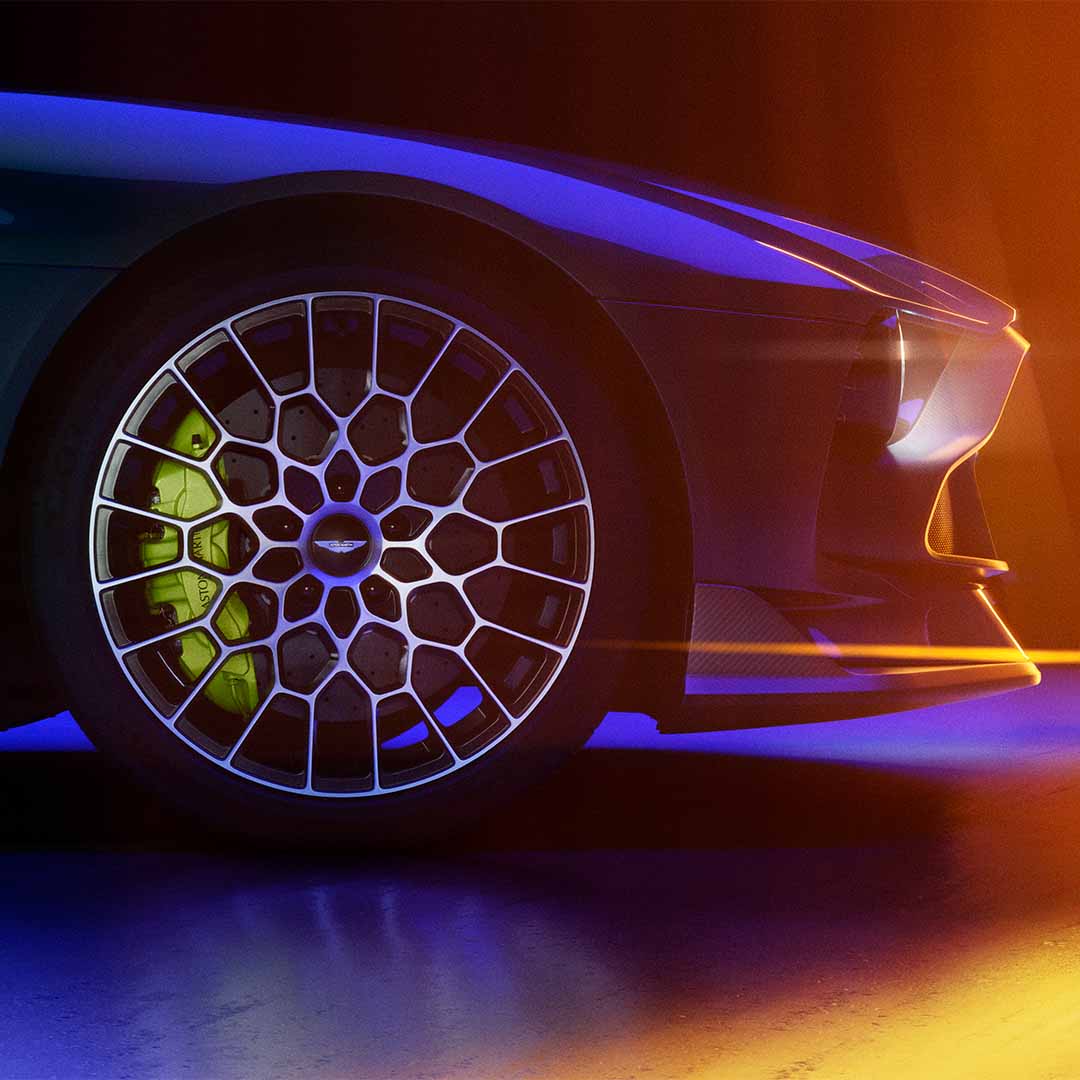 There wasn't a tyre in existence that could handle the intuitive demands of Valour. A bespoke Aston Martin compound has been developed in collaboration with Michelin to ensure the highest levels of grip, feel and response from the new Michelin Pilot Sport S 5 tyre. The Dual Sport hybrid compound increases dry road grip, while functional elastomers and silica give excellent wet grip and braking performance.