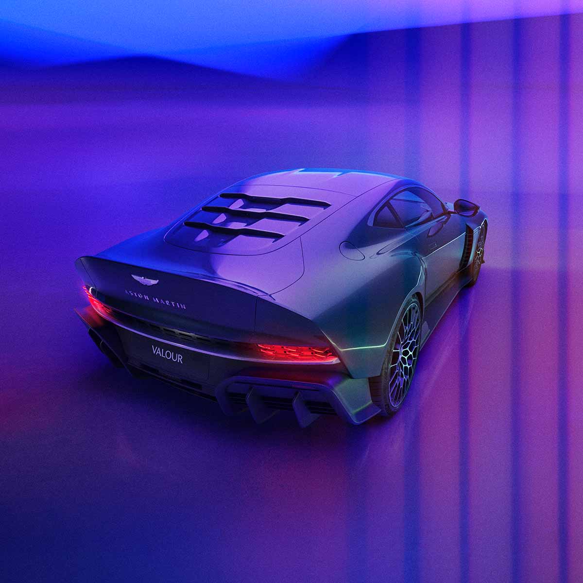 Valour draws inspiration from the timeless aesthetics of iconic race and road cars from the 1970s, seamlessly blending the DNA of the V8 Vantage with a cutting-edge full carbon body that embodies the spirit of tomorrow.