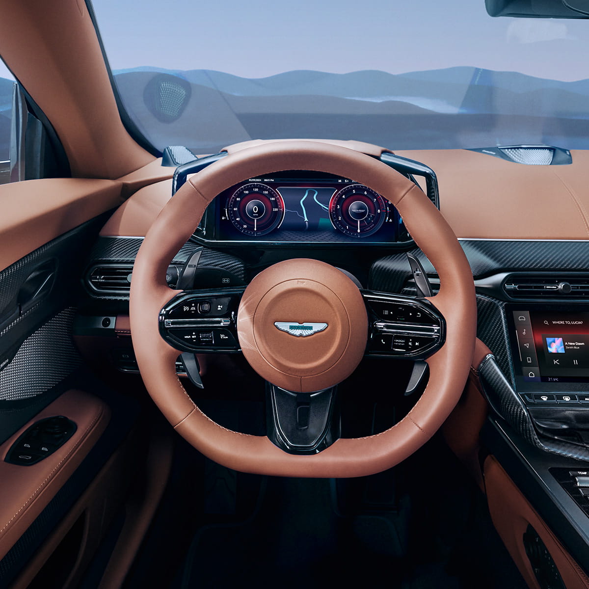The new centre console combines precise analogue controls with a cutting-edge 'Pure Black' touchscreen, creating a high-performance, intuitive interface. Vanquish features a top-tier Bowers & Wilkins audio system, delivering 1,170 watts through 15 speakers, including 3D sound. QuantumLogic Immersion™ technology customises cabin sound, while premium tweeters and midrange speakers ensure smooth audio transitions. Stainless steel speaker frets, crafted by Abbey Road Studios, provide perfect balance.