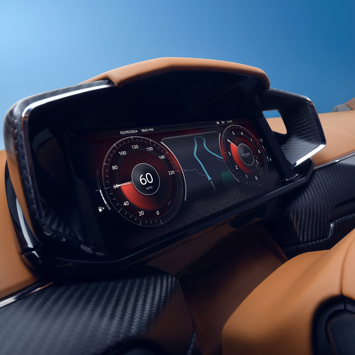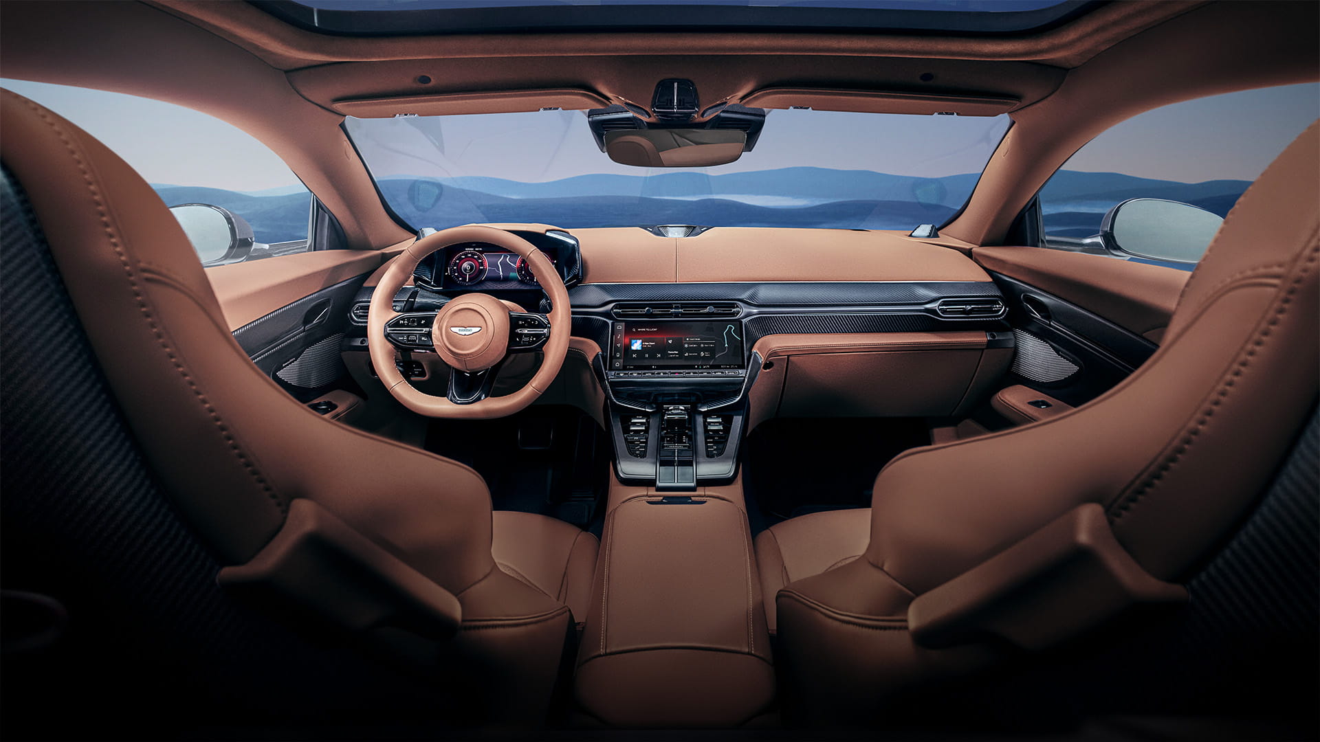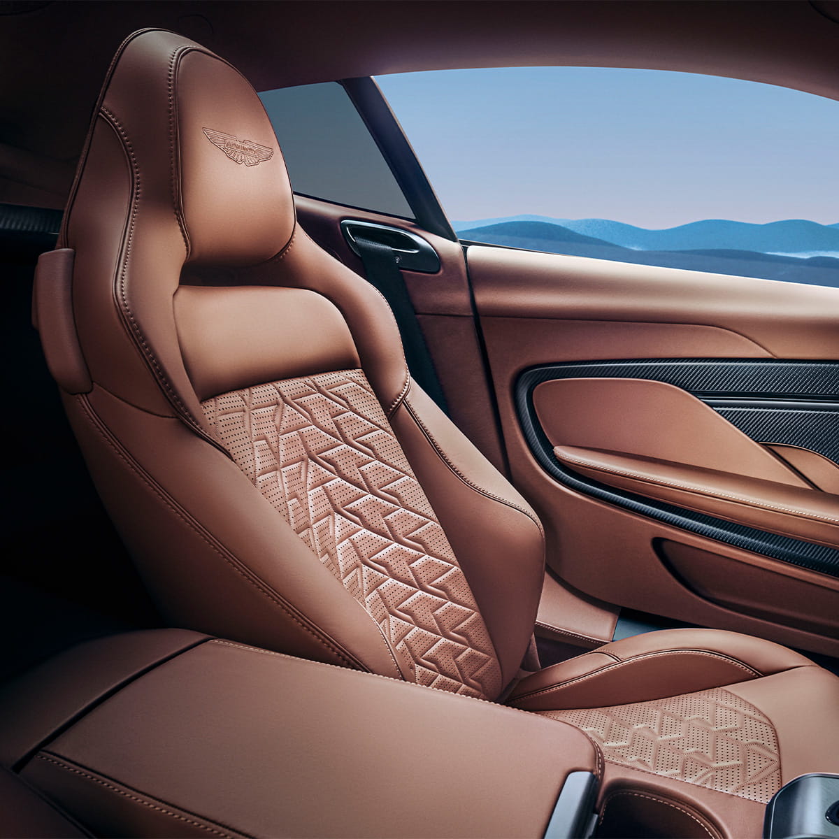 Vanquish optimises space with a luxurious rear luggage area, blending leather, carbon fibre, and metal. A sculpted carbon fibre cross brace adds refinement, mirroring the front cabin's elegance. Unique quilted seats, satin or gloss carbon finishes, and metallic accents in gold, silver, or copper enhance the design. Cashmere, contrast stitching, Alcantara™, and chrome blend sporty and classic luxury elements.