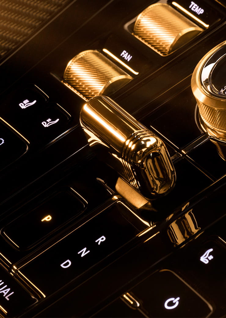 - Fascia and Door Trim Inlays - Leather Wrapped / Light Brushed Aluminium/ Dark Brushed Aluminium / Light Ash Open Pore Wood / Dark Walnut Open Pore Wood / Satin 2x2 Twill Carbon Fibre