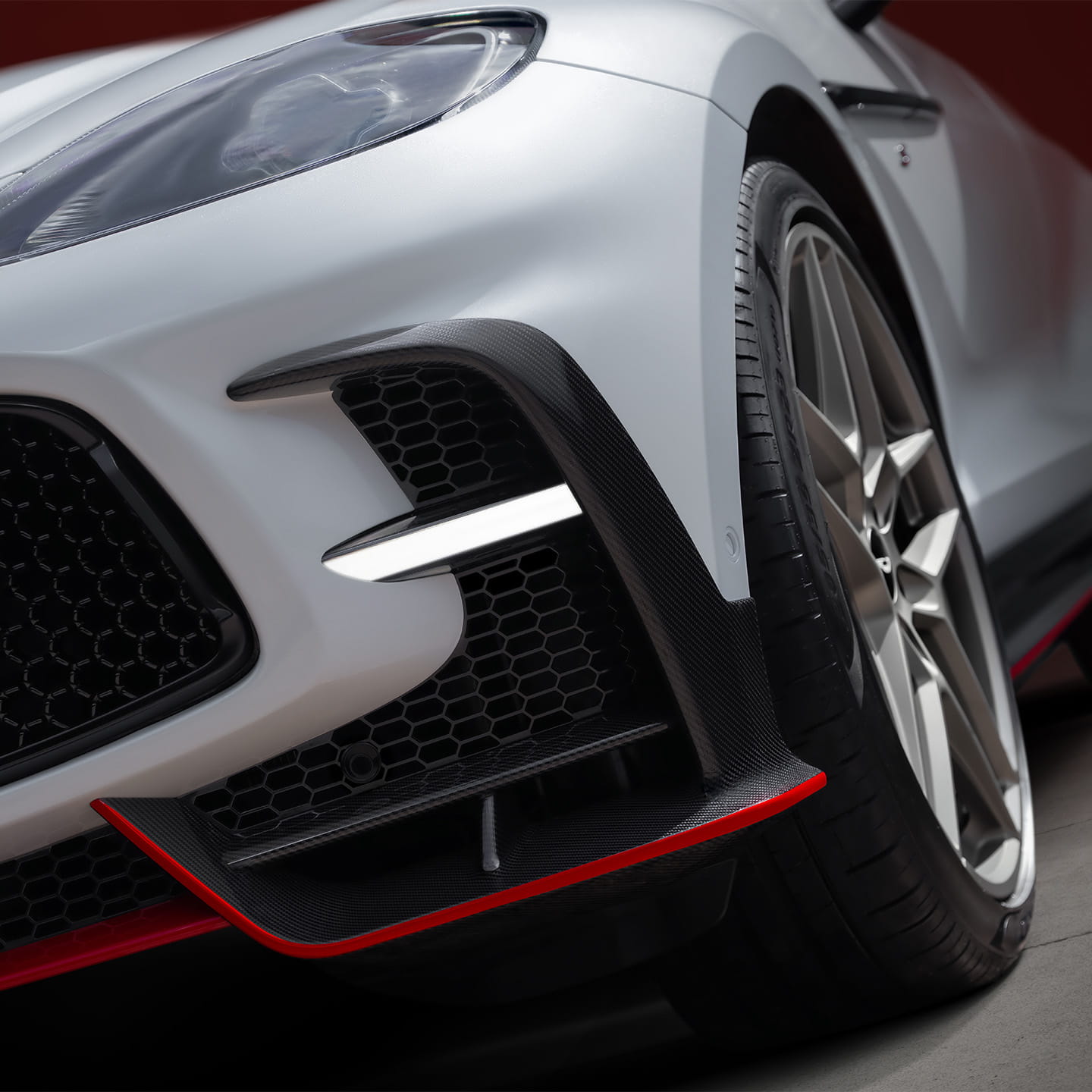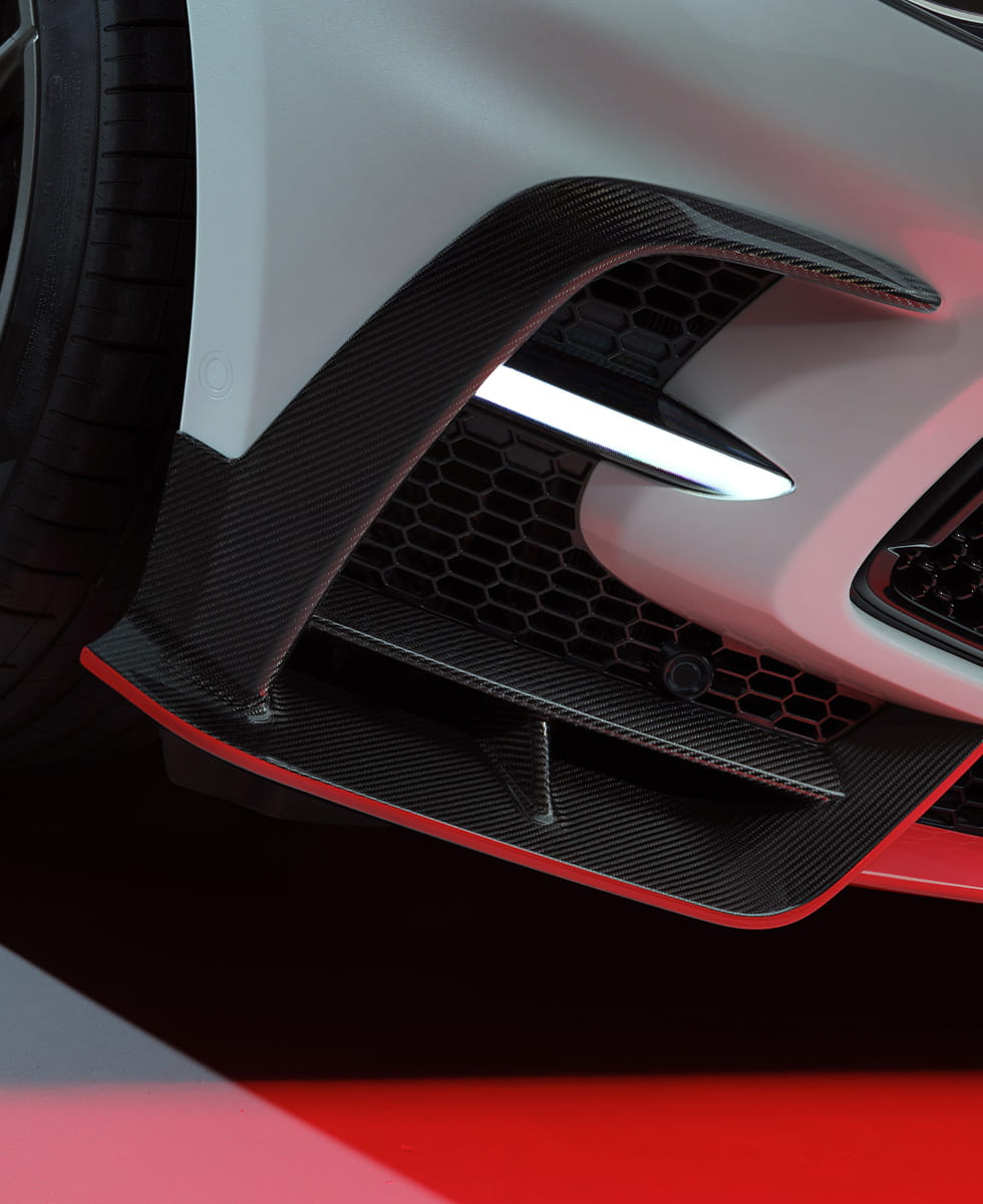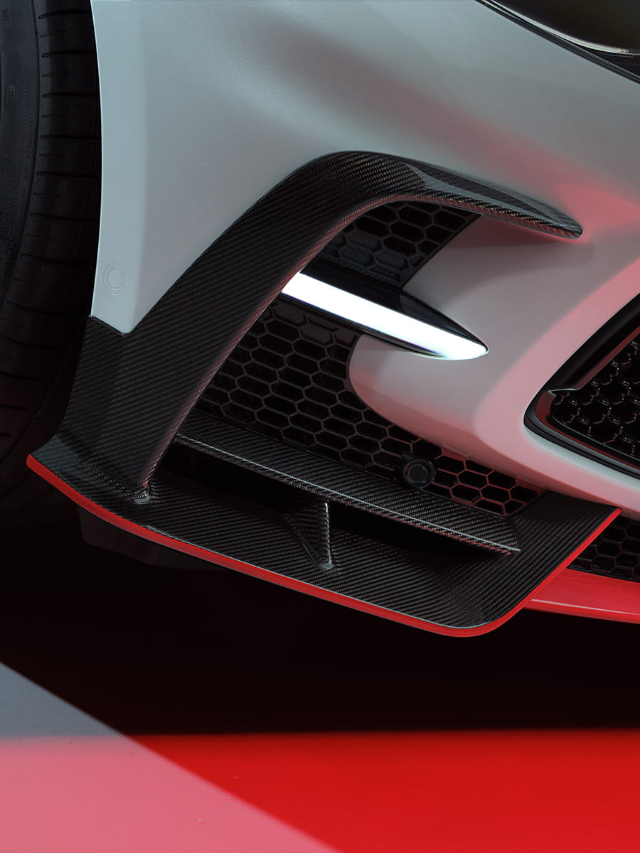 - Sport design front bumper with double vane grille, wide body cooling intakes, high gloss 'S' design splitter with integrated outboard 'S' wrap around aero winglets and DRL surrounds