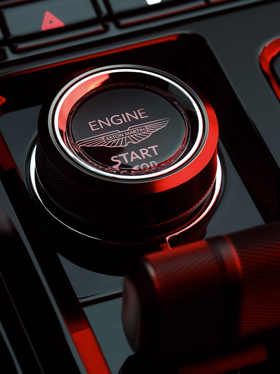 - Rotary drive mode selector with crystal glass 'Aston Martin' wings start stop button