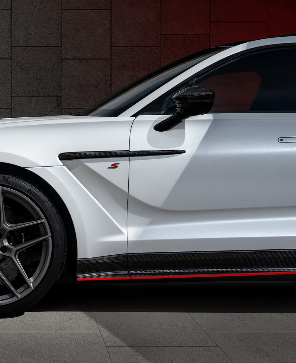Marking the return of S. The most powerful SUV in the world using only an internal combustion engine. Amplified DNA brings a suite of performance enhancements. More aggressive with turbochargers taken direct from the forthcoming Valhalla, increasing power by 20PS. More assertive with a unique lower splitter, diffuser and quad stacked exhausts. More attitude with an optional polycarbonate honeycomb grille, carbon fibre roof and 23” magnesium wheels. Lightweighting options that give it the most power-to-weight ratio of any SUV on the planet. A fusion of blistering performance, supreme dynamics, iconic style and benchmark luxury.