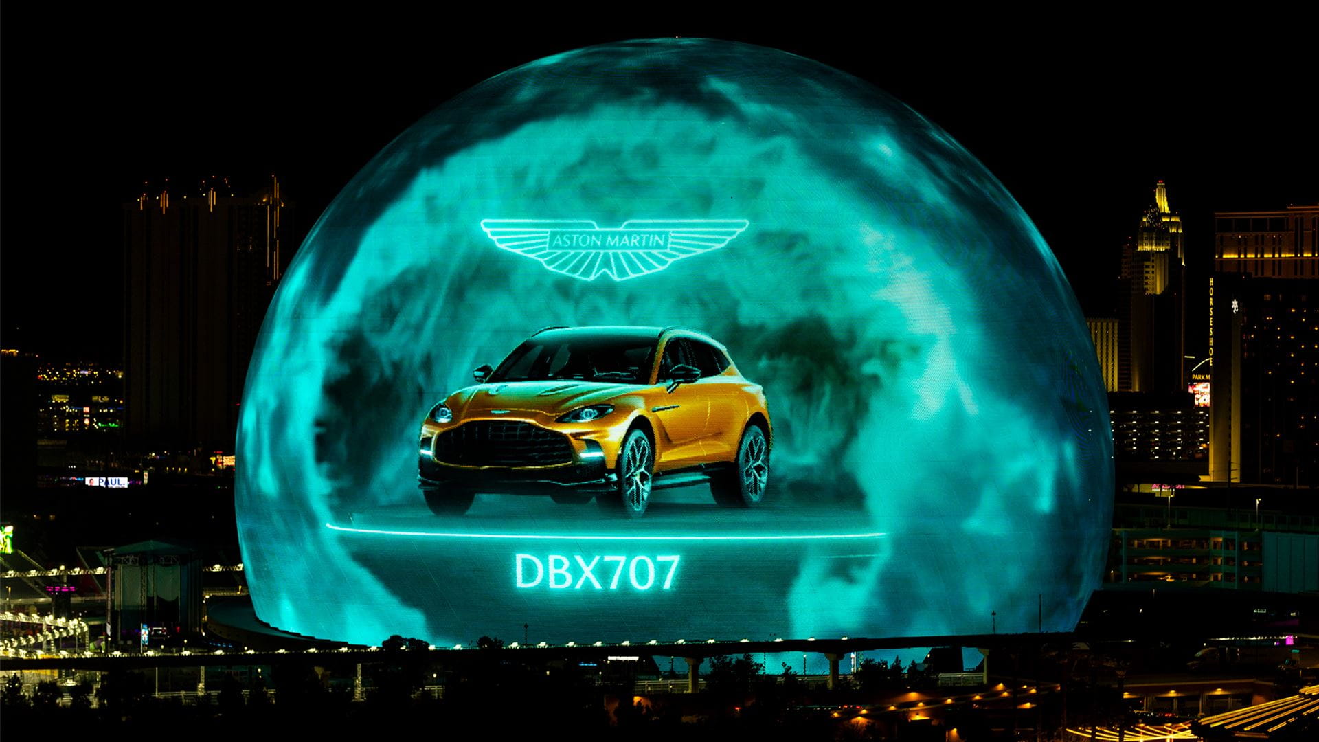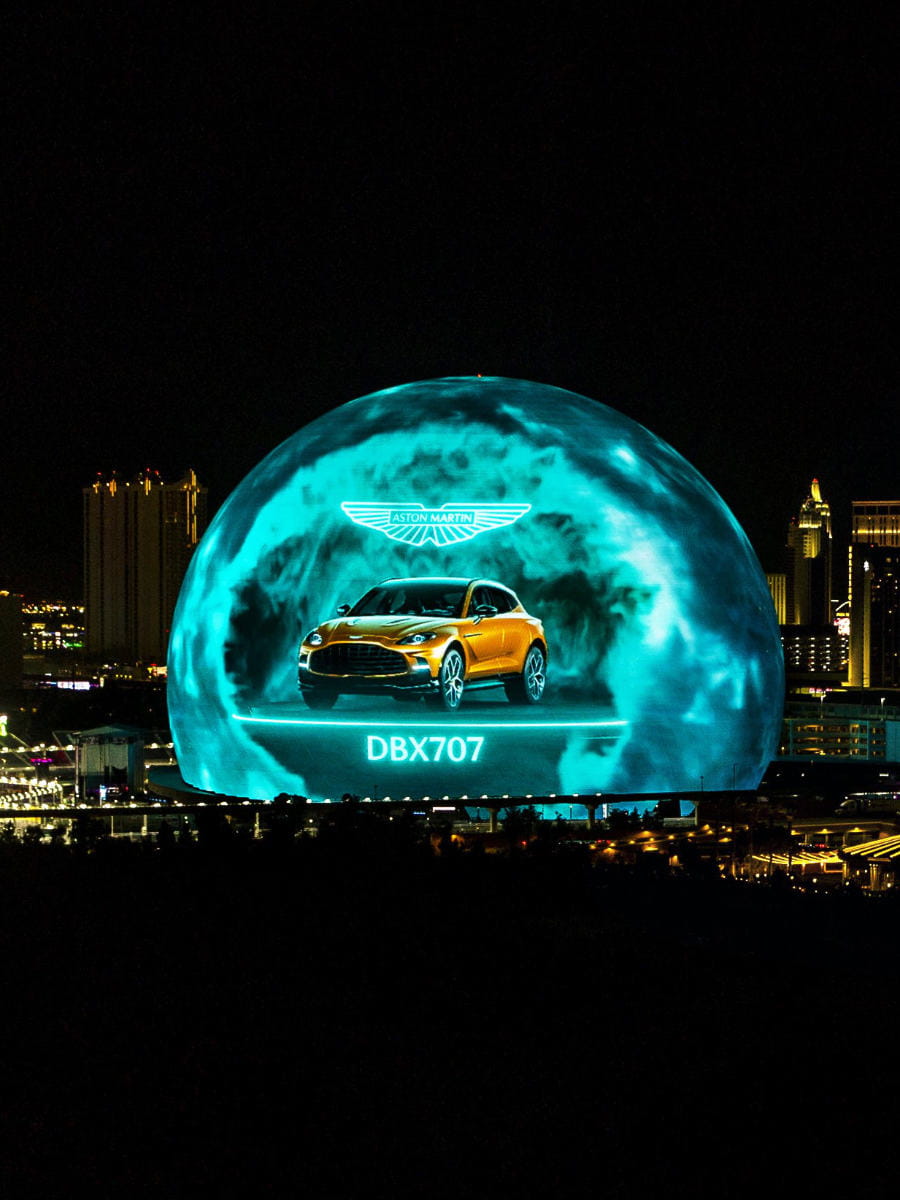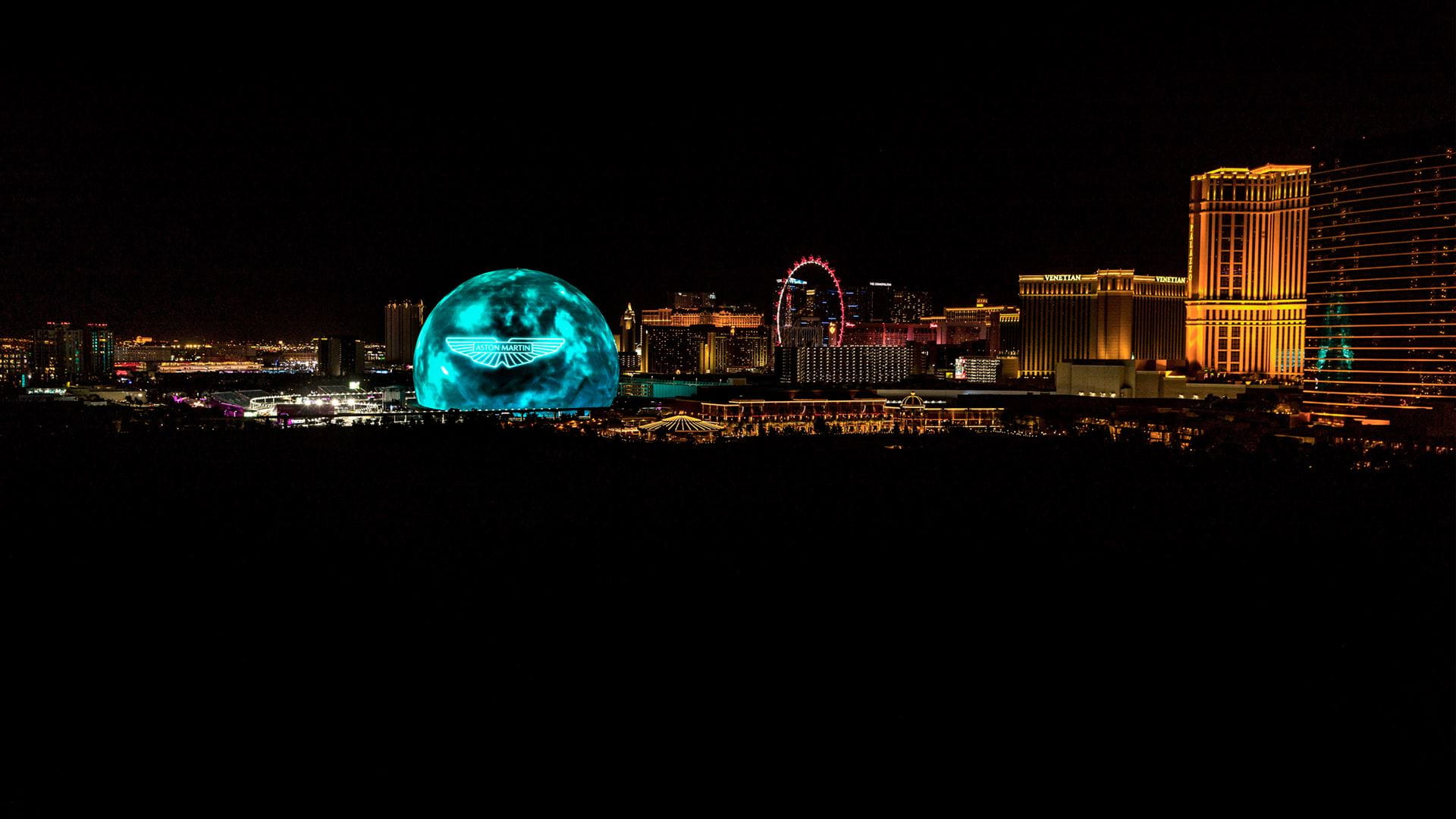 But before we left the table, we had another first to fire into the Vegas sky. Partnering with FORMULA 1 HEINEKEN SILVER LAS VEGAS GRAND PRIX, we became the first ultra-luxury car manufacturer to appear on the world's largest spherical structure. A British icon beaming from a 268 million pixel canvas, visible from space. Illuminating the night and firing AMR23 onto a podium. Our commitment to driving purity placed on the world’s highest resolution LED screen.