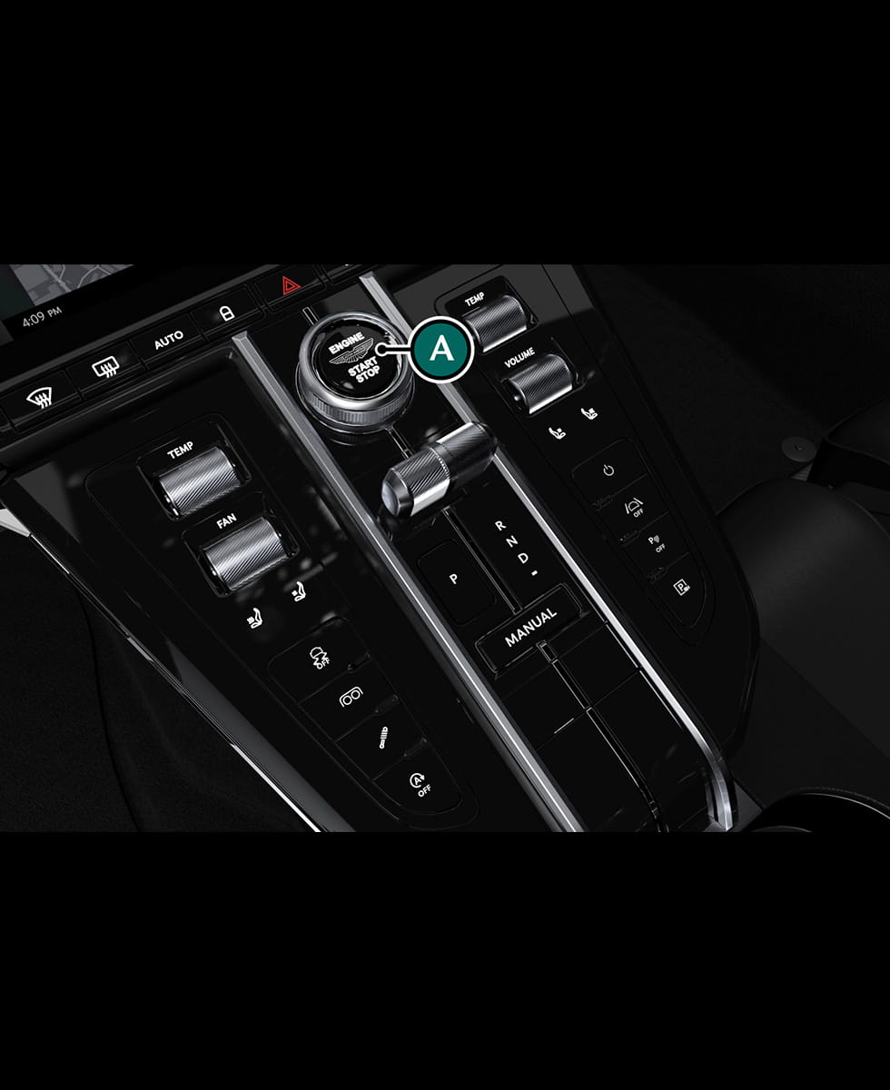 To start the engine, press the brake pedal and press START/STOP (A) with the transmission in Park (P).