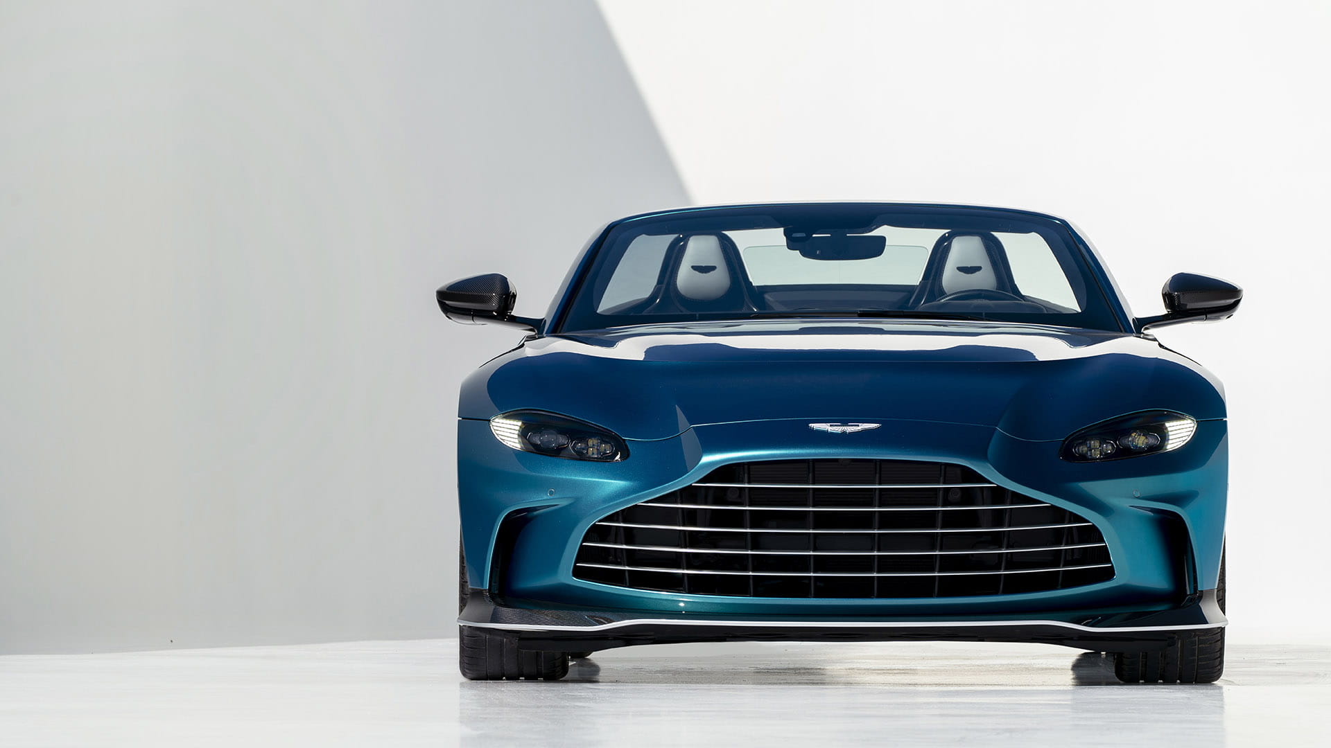 Une sculpture étourdissante qui asservit l'air. De l'instant où l'atmosphère pénètre par la calandre à celui où elle s'éloigne par l'aileron arrière en option, la V12 Vantage Roadster dompte l'air extérieur. Elle manipule et façonne celui-ci selon ses exigences. Du refroidissement du moteur et des freins à la fourniture d'un appui atteignant 216 kg avec l'ensemble aérodynamique en option, une valeur justifiée par le maintien au sol à 322 km/h.