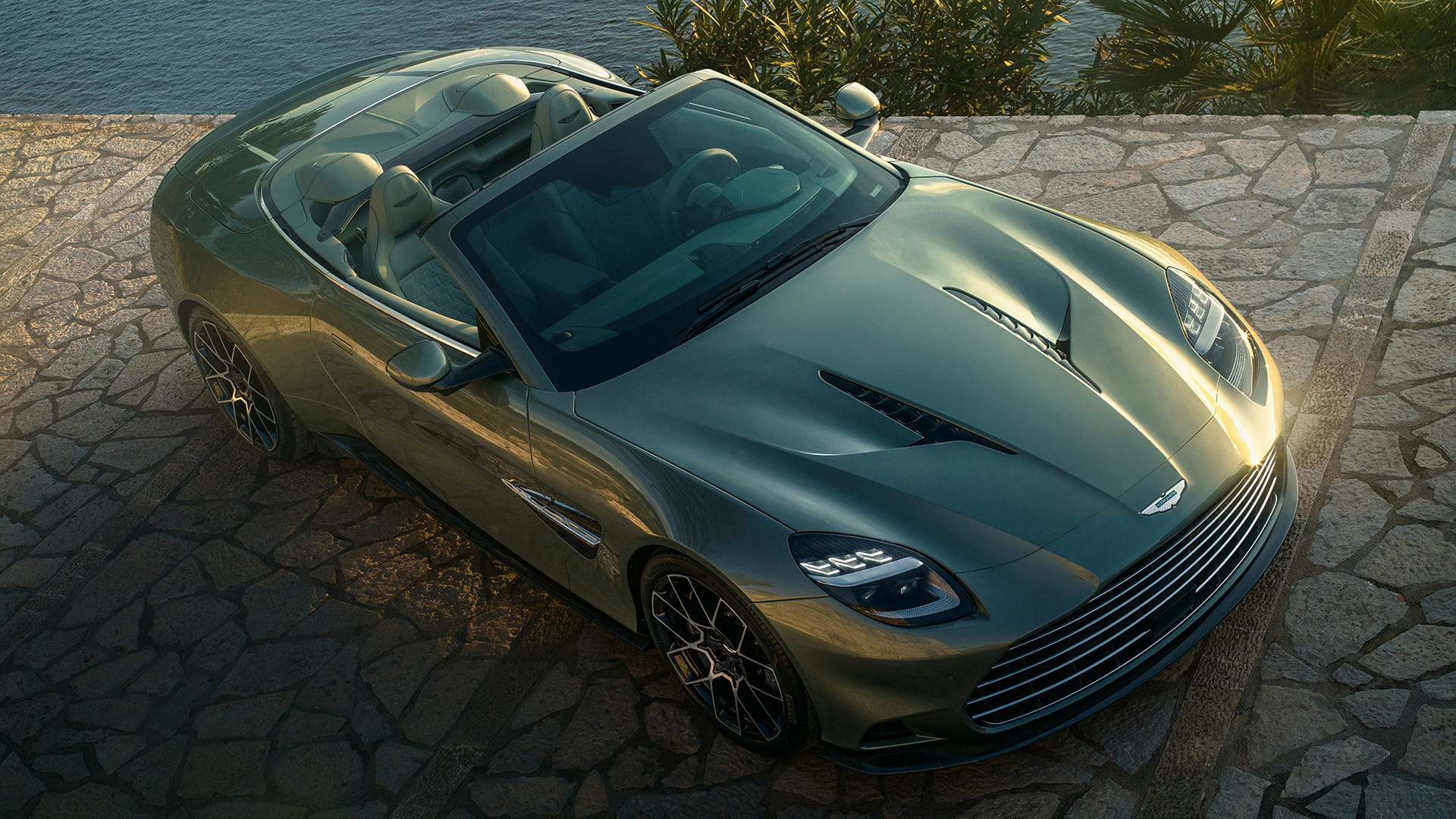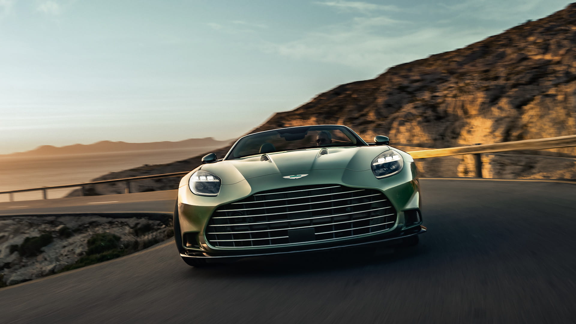 Par rapport à son prédécesseur, la superbe calandre à ailettes horizontales de Vanquish Volante offre une surface de refroidissement supérieure de 13 %. Le tout nouveau pare-chocs avant avec son aileron intégré ajoute une allure large et sans compromis. Inspirées de notre voiture de Formule 1©, les lamelles thermiques distinctives du capot moteur sculpté et fortement incliné contribuent au refroidissement du puissant moteur V12. Les phares Matrix LED présentent une nouvelle signature lumineuse avec le logo Aston Martin gravé à l'intérieur.