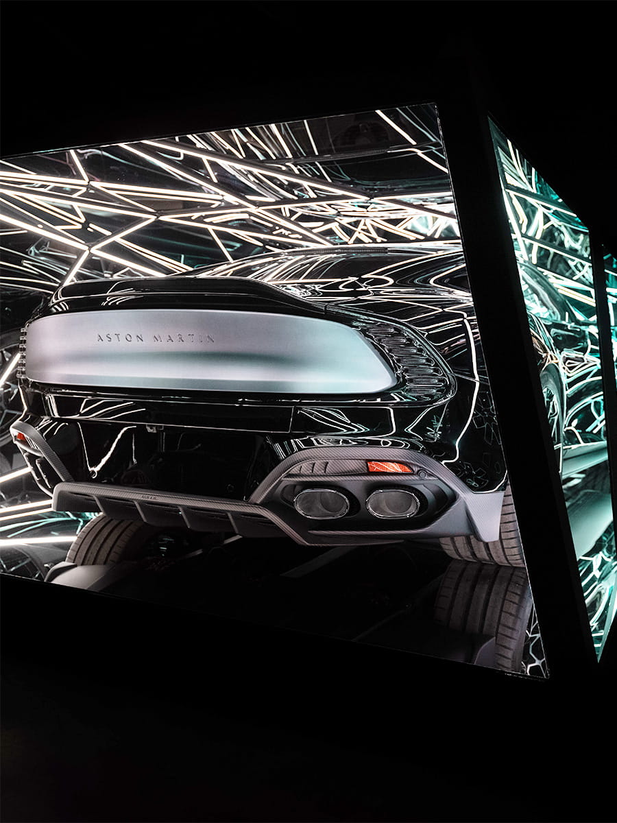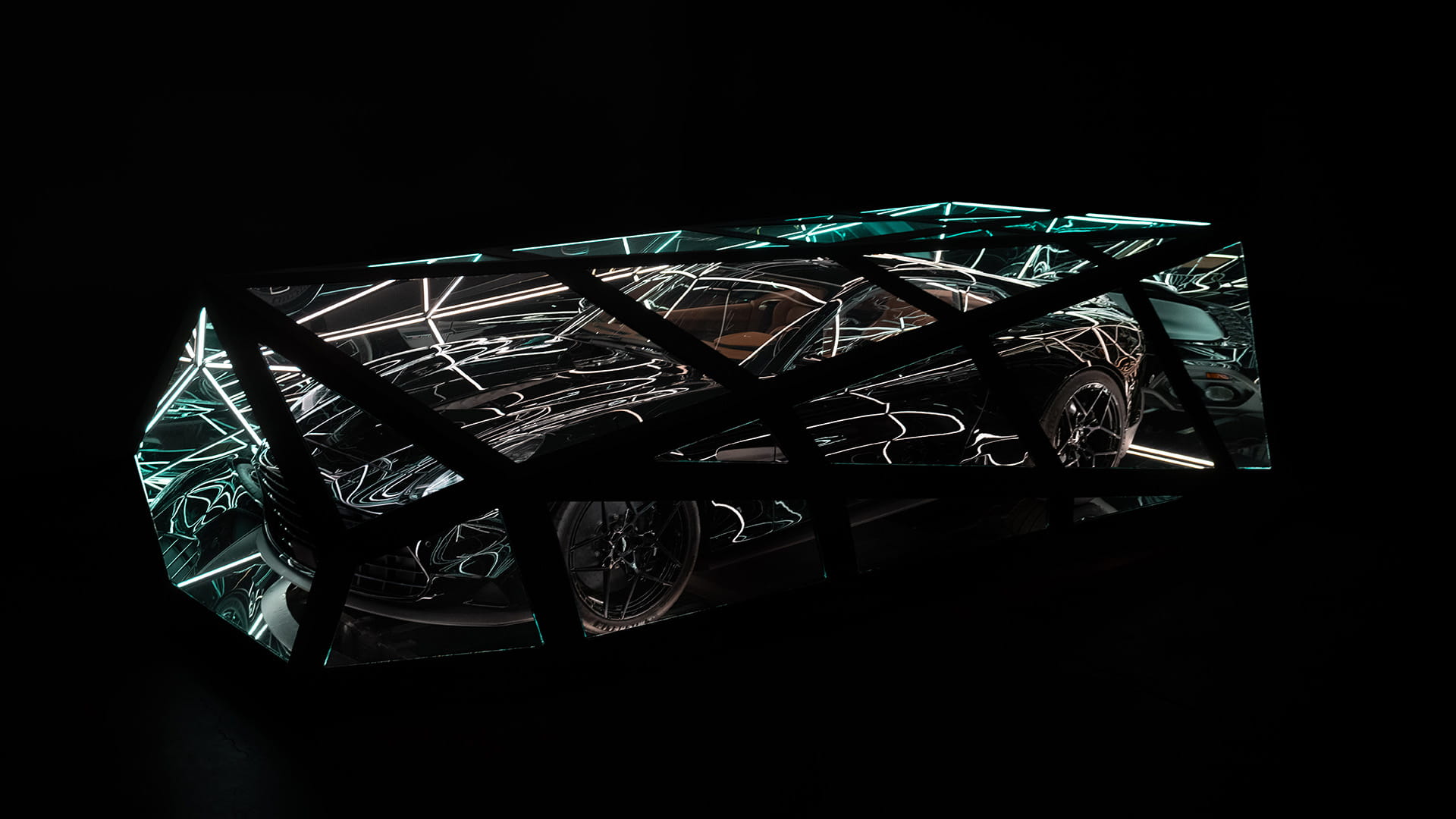 受阿斯顿·马丁旗舰 V12 超跑 Vanquish 启发,这座重达 6,000 磅(2,721 公斤)的单一整体雕塑,秉承艺术家标志性的光影与几何交融手法,以震撼视觉体验生动还原超跑神韵。倾斜镜面构筑的无限延伸幻境,在时空维度中展开对浩瀚宇宙的诗意探索,而永恒闪耀的核心,正是那台 Vanquish。